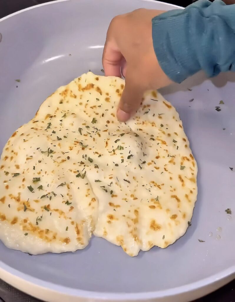 - Heat a skillet over medium heat. Cook each pita until golden brown on one side, then flip when bubbles start forming.