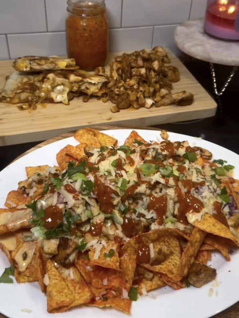 Let the chicken rest for a few minutes, then chop it into bite-sized pieces for bowls, tacos, or nachos.