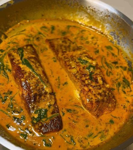 Let’s talk flavor! This Creamy Gochujang Salmon with Spinach is spicy, creamy, and packed with umami goodness in every bite. It’s got that bold Korean-inspired heat from the gochujang, balanced by a rich, garlicky cream sauce and sweet brown sugar. And let’s not forget the pan-seared salmon, seasoned to perfection and spooned over with all that saucy goodness.
