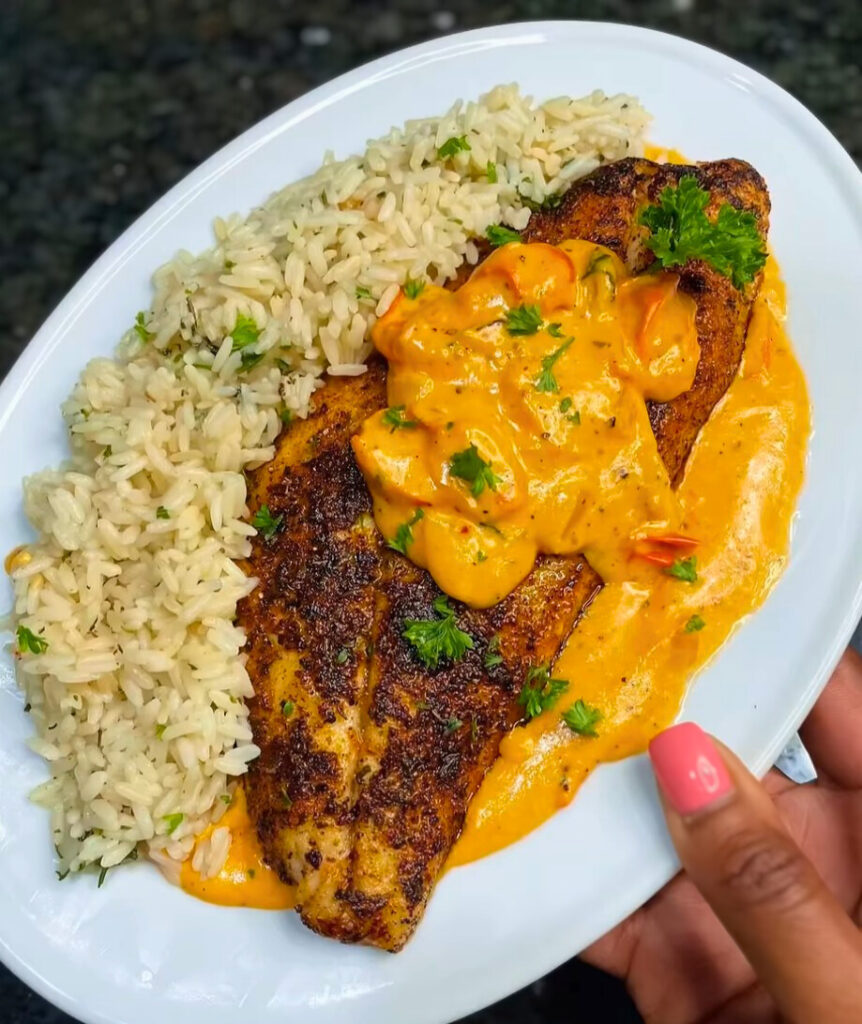 Imagine golden-seared red snapper kissed with lemony olive oil and nestled into a rich, creamy Creole sauce bursting with cherry tomatoes, garlic, and bold Brass Cuisine seasonings. Add a side of garlicky, buttery herb rice and you’ve got the kind of plate that doesn’t just feed—it satisfies deep.