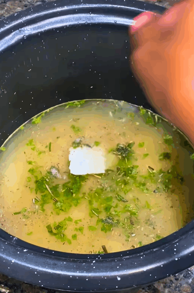 - Pour in the heavy cream and season with Garlic Pepper and Salt-Free Creole Seasoning.