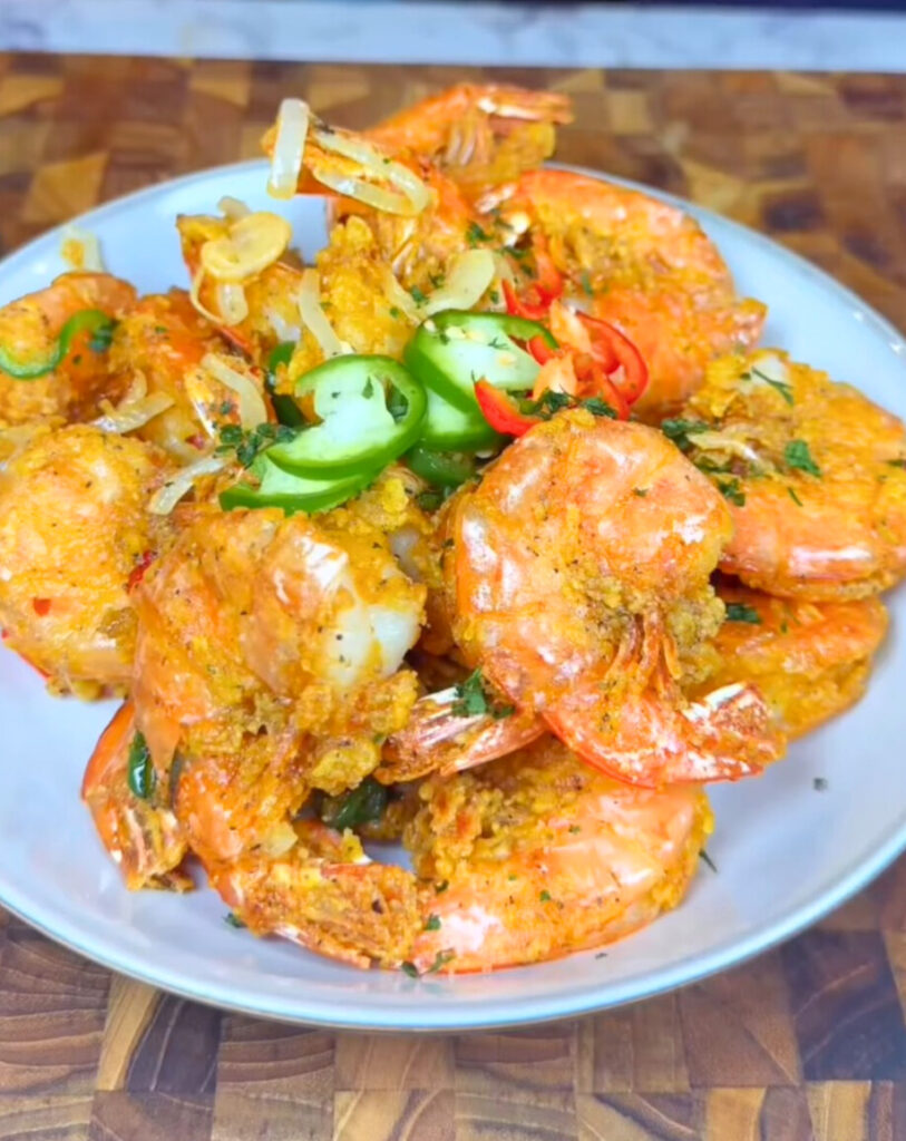 Crispy Fried Shrimp with a Kick of Garlic, Peppers, and Soul