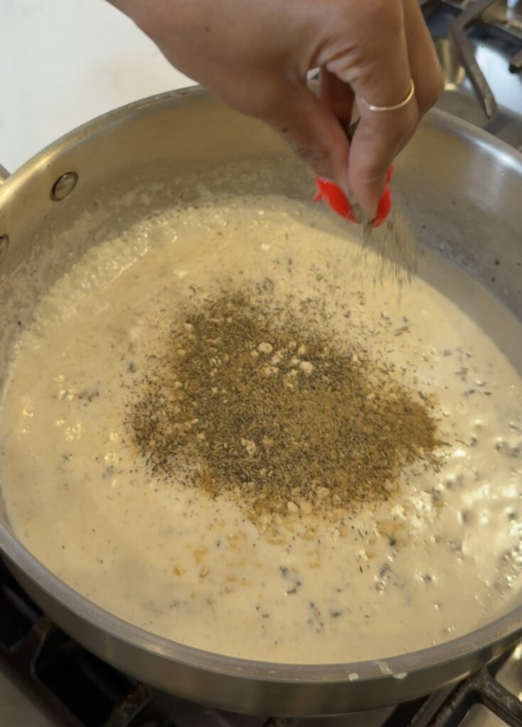 Add your onion powder, garlic powder, dried fennel, black pepper, Herbs de Provence, and salt. Stir everything together to create layers of flavor.