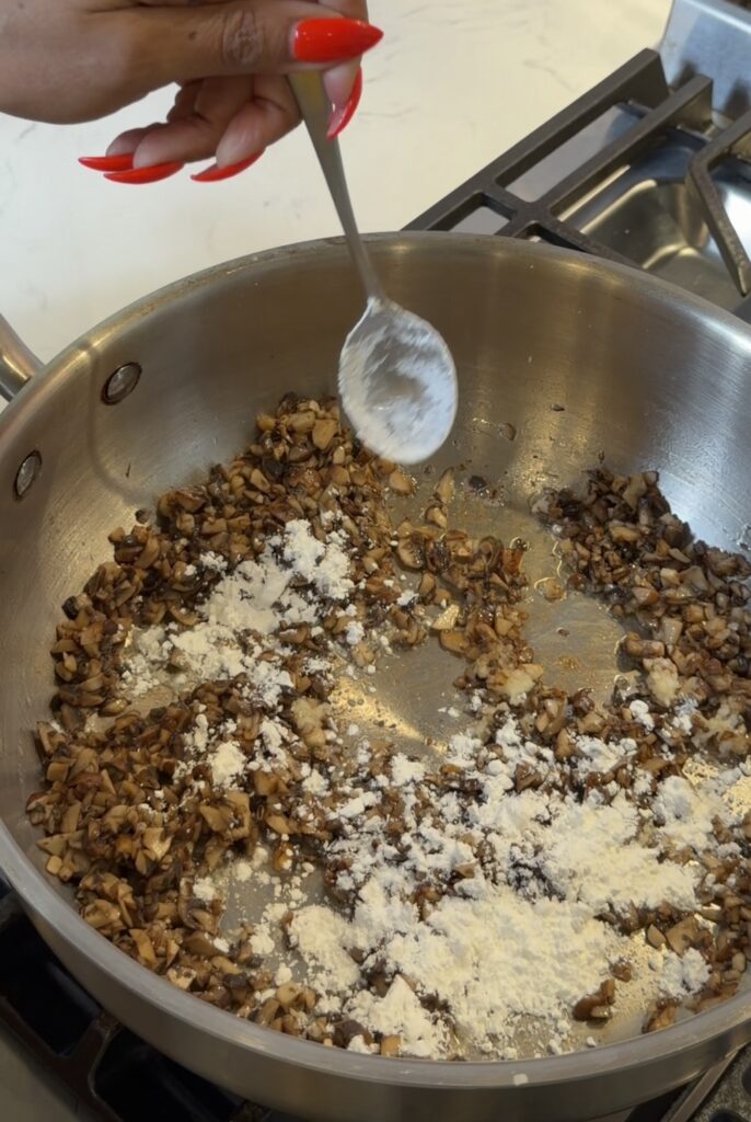 Sprinkle in a few tablespoons of cornstarch and stir to coat the mushrooms. This will help your soup reach that creamy consistency.