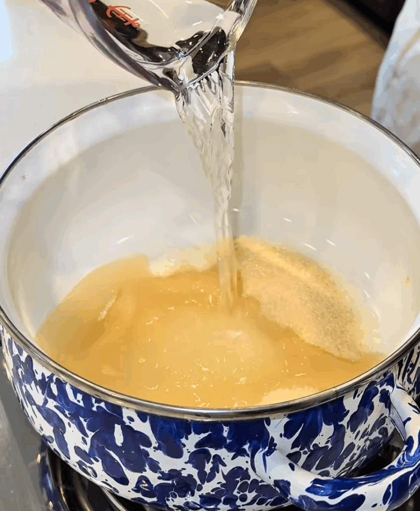 In a small saucepan over medium heat, stir together ½ cup sugar and ½ cup water until the sugar fully dissolves and the liquid turns clear.