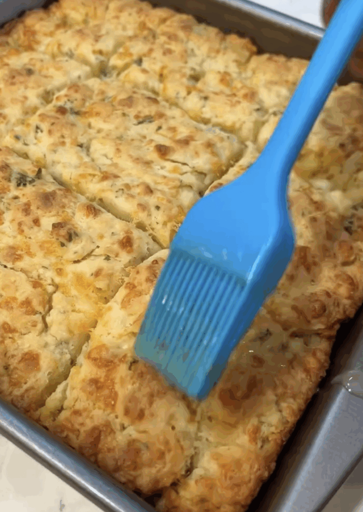 • Brush garlic butter over hot biscuits and serve immediately.