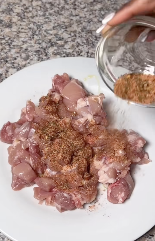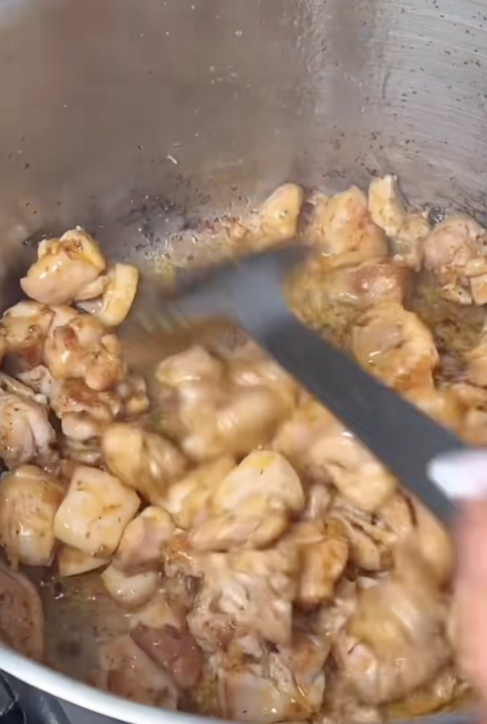 • In a large skillet, heat 1 tablespoon of olive oil over medium-high heat. Add chicken and cook until browned on all sides, about 5-7 minutes.