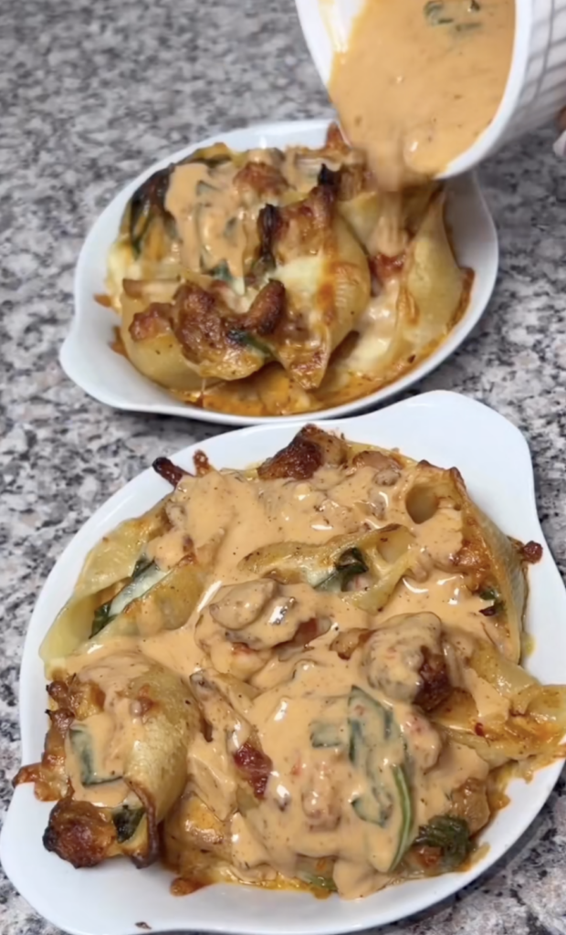 These creamy chicken stuffed pasta shells are brought to you by T (@theprettycuisine). This recipe is sure to impress your family and friends with its delicious flavor and beautiful presentation. So why wait? Give these creamy chicken stuffed pasta shells a try today and see for yourself how delicious they truly are!