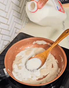 - In a bowl, stir together cream of mushroom soup and milk until smooth.