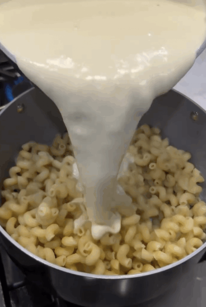 • Prepare macaroni and coat it with your creamy mac and cheese sauce.