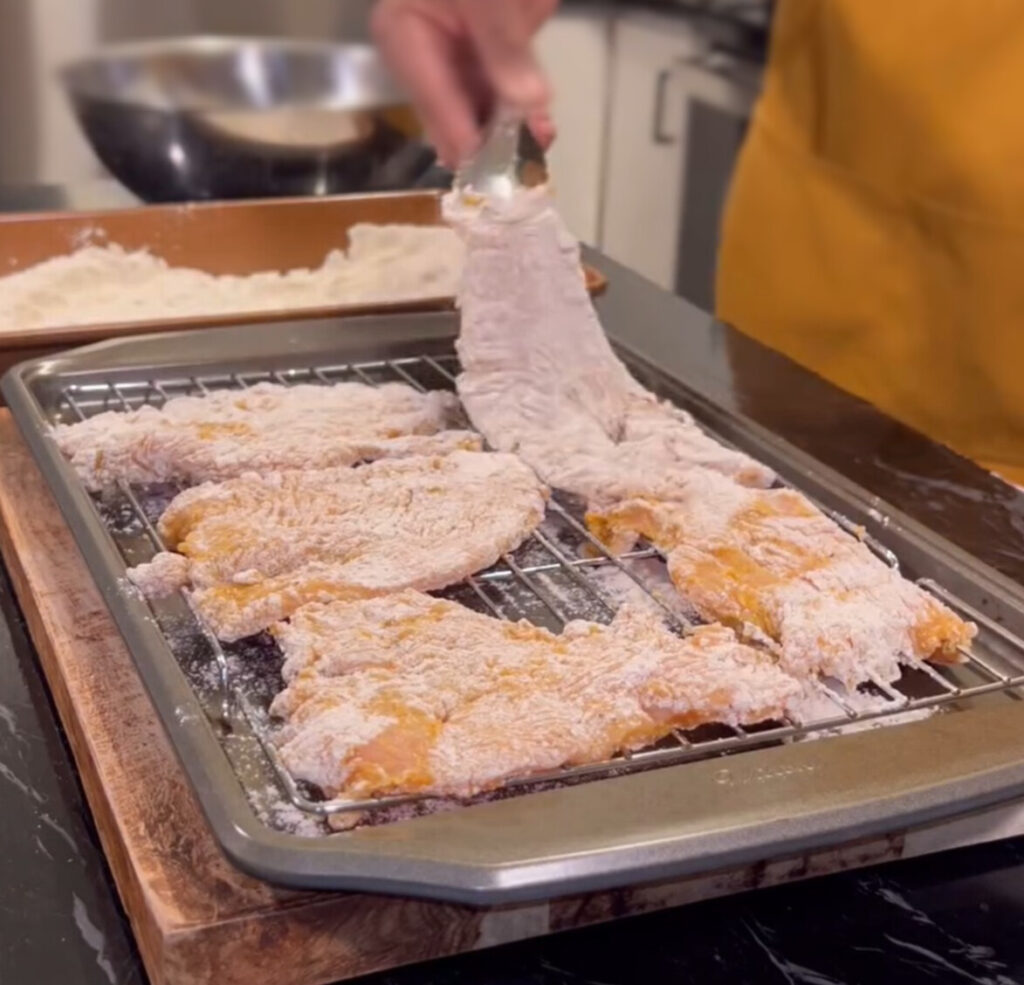 • Place on a tray and set aside until all chops are coated.