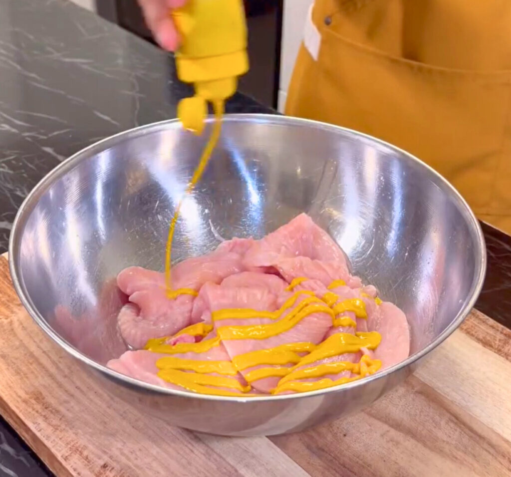 • In a bowl, mix mustard, eggs, and all seasonings (garlic powder, onion powder, paprika, Ms. Dash, Badia Complete).