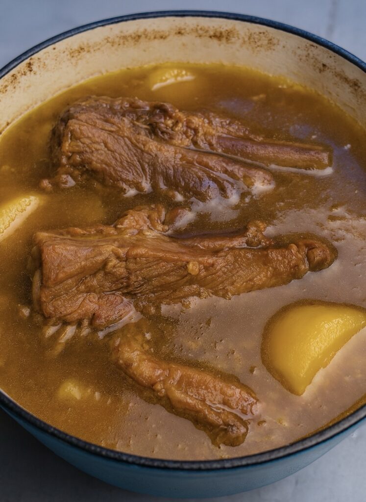 - Cover and simmer for about 1.5 to 2 hours, or until the ribs are tender and potatoes are cooked through.