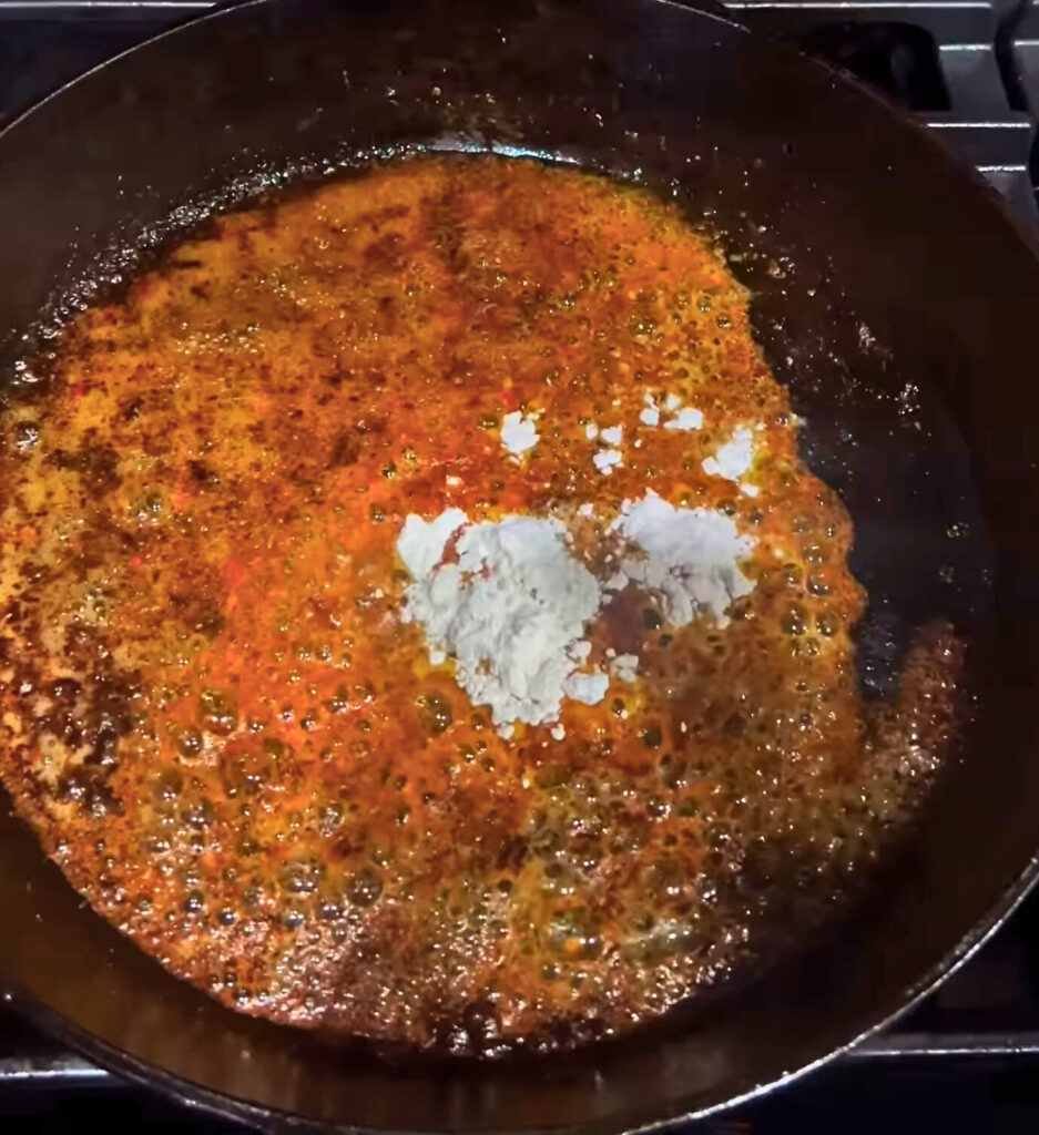 - Whisk in flour and cook for 1–2 minutes.