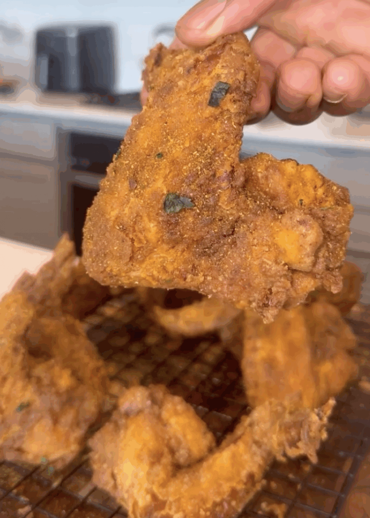 Then they’re double-dosed with seasoning—first in the marinade, then again in the flour, and finally hit with a homemade curry dry rub that seals the deal. Whether you’re cooking for the fam or flexing at your next cookout, this recipe is the one that’ll have folks licking their fingers and asking for more.